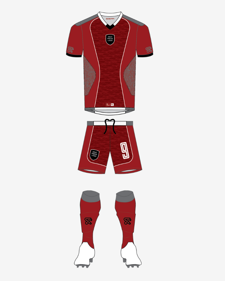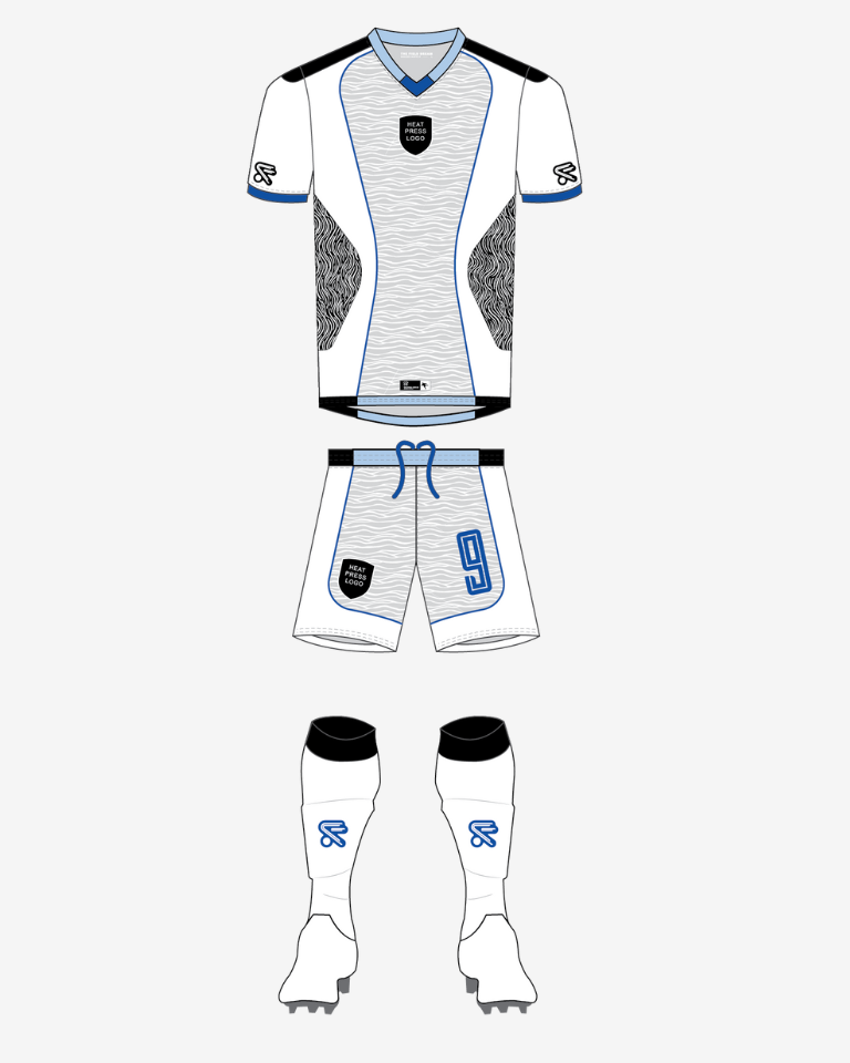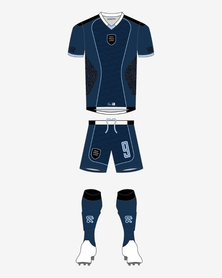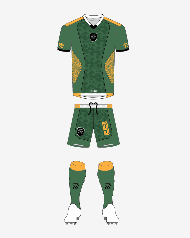 Pro-level performance, custom built. This is the kit the pros wear. Our most premium template features custom cut-and-sew panels, silicone-molded club crests, and soft TPU lightweight badges that feel as good as they look. Every detail is dialed in – from soft rubber logo prints to premium heat-pressed numbers. Customize with your club colors, logos, and numbers for a truly professional finish.